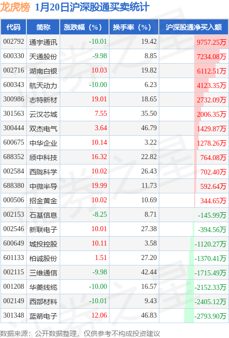 龙虎榜中有沪股通/深股通专用席位(北向资金)现身的个股共25家,其中通宇通讯以净买入9757.25万元排名第一。详情见下表: