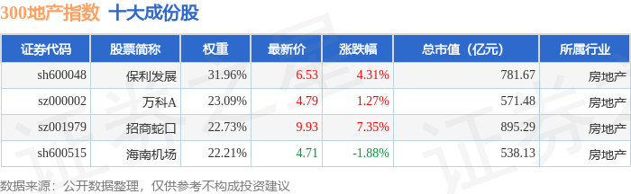 证券之星消息,1月20日,300地产(000952)指数报收于2558.62点,涨3.11%,成交62.3亿元,换手率2.47%。当日该指数成份股中,上涨的有3家,招商蛇口以7.35%的涨幅领涨,下跌的有1家,海南机场以1.88%的跌幅领跌。