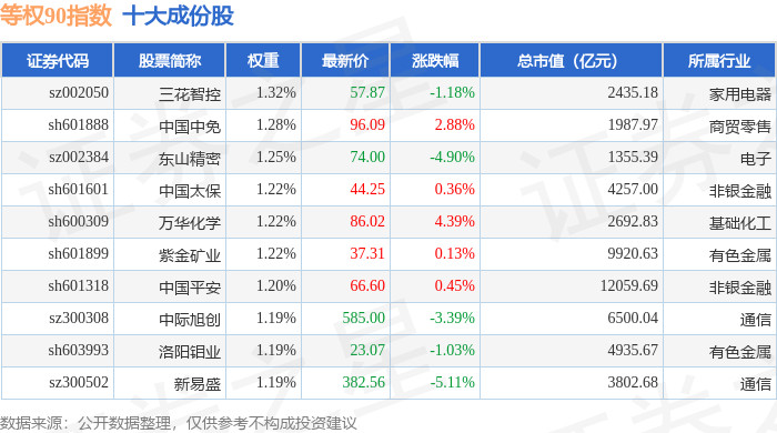 等权90(000971)指数十大成份股详情如下: