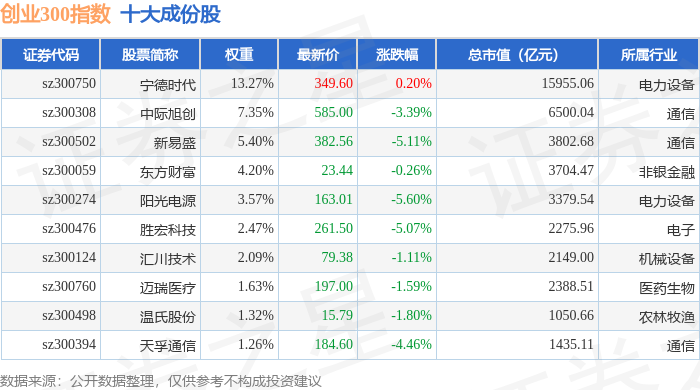 创业300(399012)指数十大成份股详情如下:
