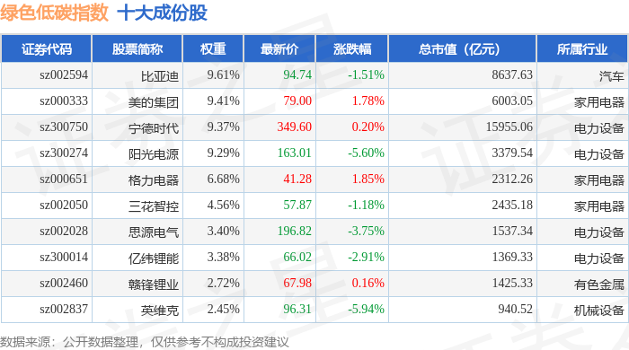 绿色低碳(399258)指数十大成份股详情如下: