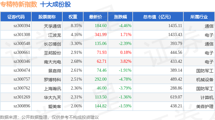 证券之星消息,1月20日,专精特新(399267)指数报收于2475.66点,跌1.7%,成交915.99亿元,换手率6.28%。当日该指数成份股中,上涨的有21家,中泰股份以9.37%的涨幅领涨,下跌的有79家,银邦股份以8.92%的跌幅领跌。