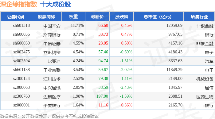 深企综指(399352)指数十大成份股详情如下: