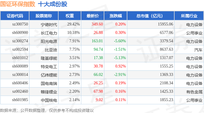 国证环保(399358)指数十大成份股详情如下: