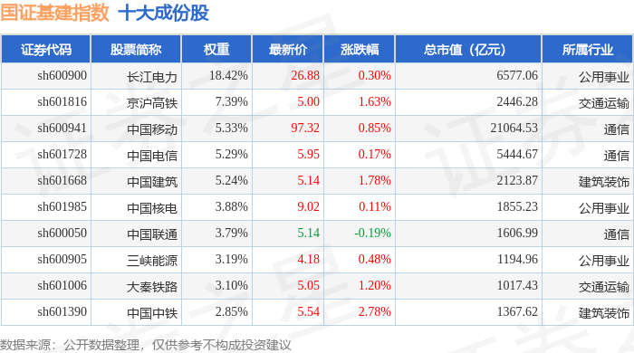 国证基建(399359)指数十大成份股详情如下: