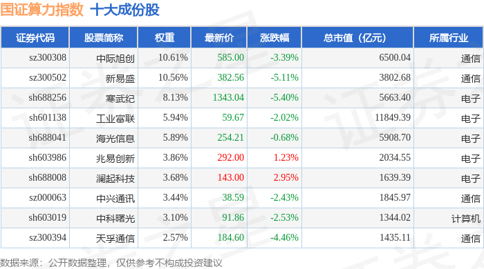 证券之星消息,1月20日,国证算力(399363)指数报收于9665.78点,跌2.17%,成交2103.0亿元,换手率1.53%。当日该指数成份股中,上涨的有11家,佰维存储以8.61%的涨幅领涨,下跌的有39家,盛科通信以6.39%的跌幅领跌。