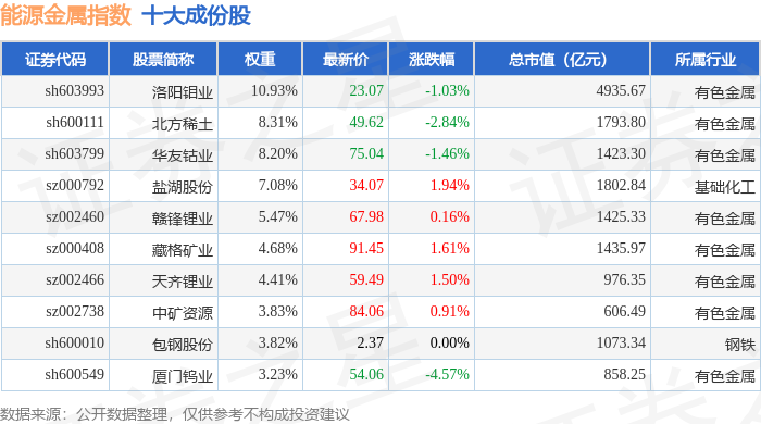 能源金属(399366)指数十大成份股详情如下: