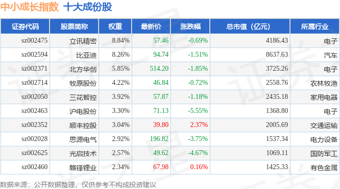 资金流向方面,中小成长(399602)指数成份股当日主力资金净流出合计71.33亿元,游资资金净流入合计26.6亿元,散户资金净流入合计44.73亿元。成份股资金流向详情见下表: