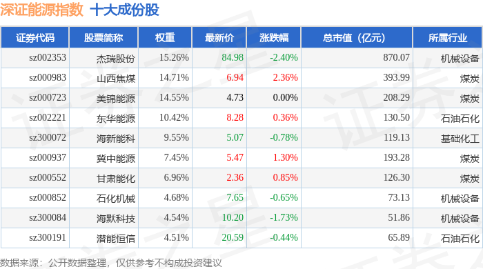 深证能源(399613)指数十大成份股详情如下: