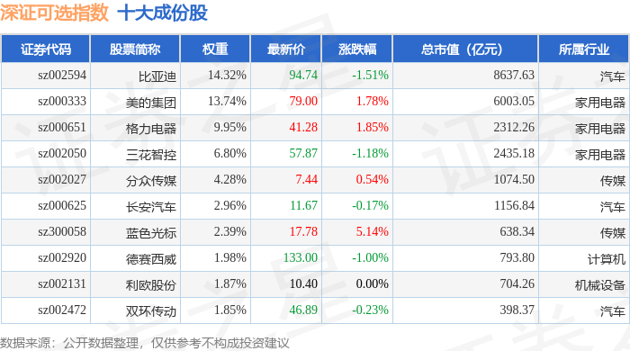 深证可选(399616)指数十大成份股详情如下: