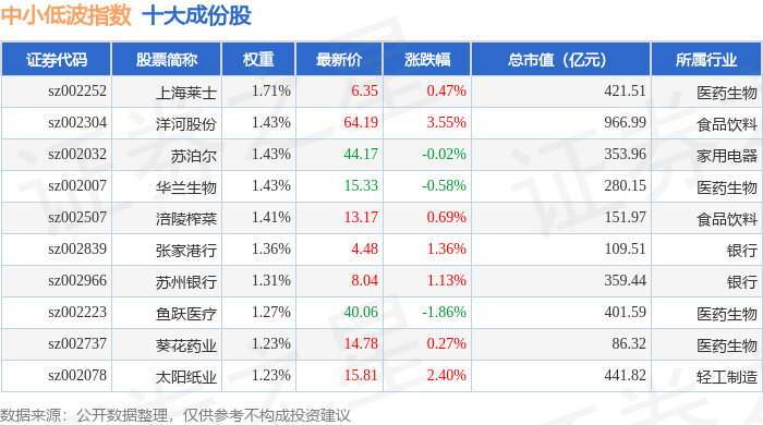 中小低波(399663)指数十大成份股详情如下: