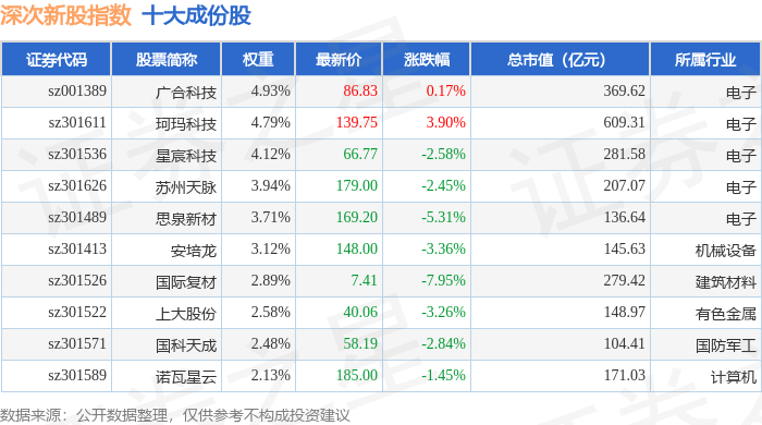 深次新股(399678)指数十大成份股详情如下: