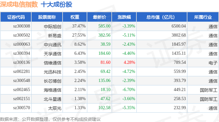 深成电信(399688)指数十大成份股详情如下: