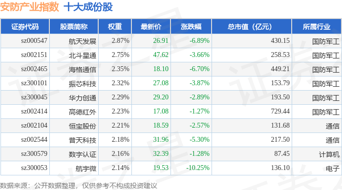 安防产业(399693)指数十大成份股详情如下:
