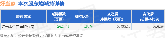 证券之星消息,1月20日好当家发布公告《好当家:山东好当家海洋发展股份有限公司关于持股5%以上股东权益变动触及1%刻度的提示性公告》,其股东好当家集团有限公司于2025年12月15日至2026年1月20日间合计减持2627.41万股,占公司目前总股本的1.7984%,变动期间该股股价下跌1.13%,截止1月20日收盘报2.63元。