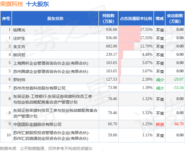 根据荣旗科技2025年三季报公布的十大股东详情如下: