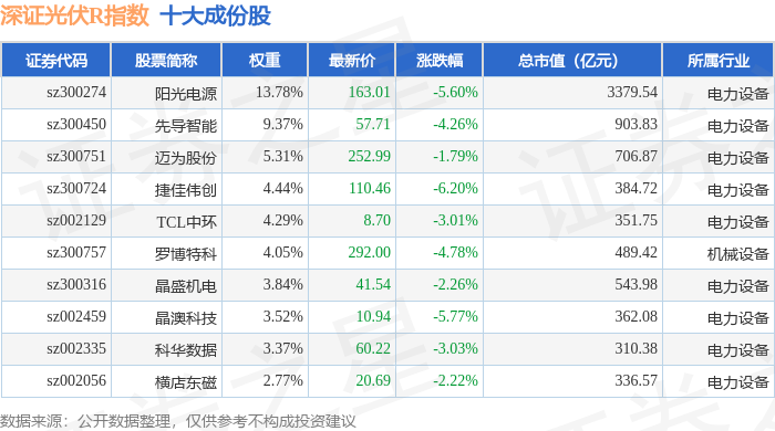 深证光伏R(470035)指数十大成份股详情如下: