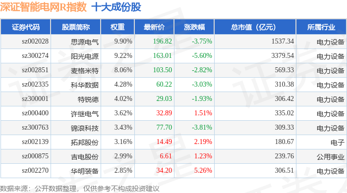 资金流向方面,深证智能电网R(470054)指数成份股当日主力资金净流出合计27.19亿元,游资资金净流入合计12.63亿元,散户资金净流入合计14.57亿元。成份股资金流向详情见下表: