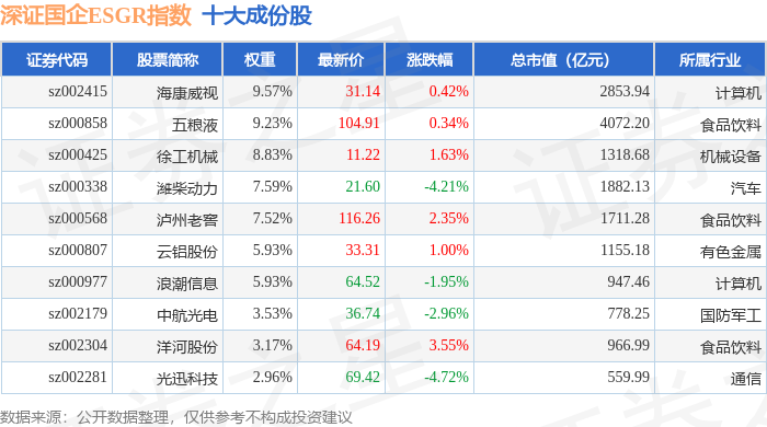 深证国企ESGR(470055)指数十大成份股详情如下: