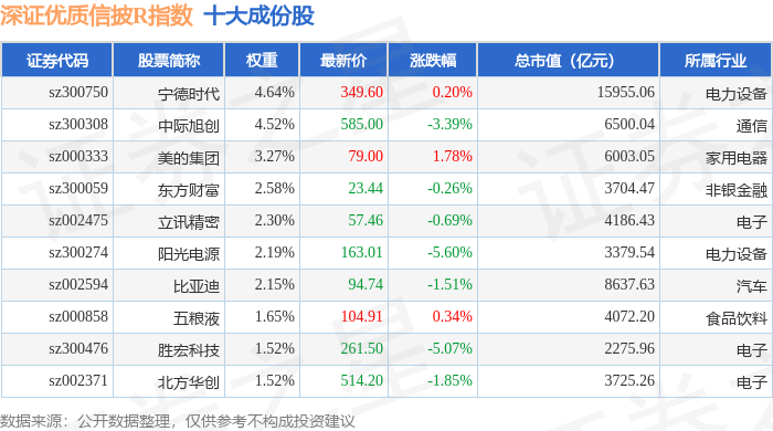 深证优质信披R(470065)指数十大成份股详情如下: