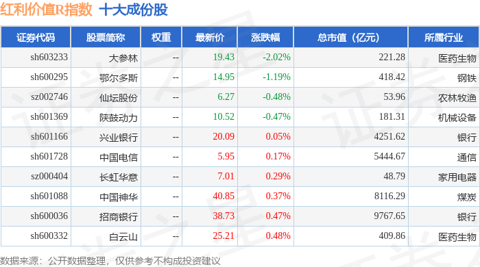 红利价值R(489016)指数十大成份股详情如下: