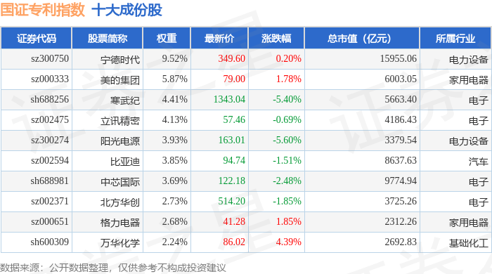 国证专利(980070)指数十大成份股详情如下: