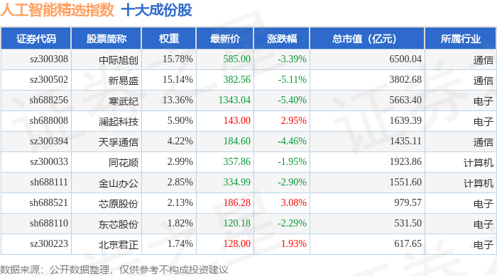 资金流向方面,人工智能精选(980087)指数成份股当日主力资金净流出合计69.34亿元,游资资金净流入合计37.75亿元,散户资金净流入合计30.4亿元。成份股资金流向详情见下表: