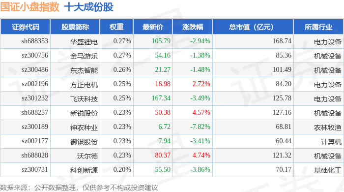 国证小盘(980202)指数十大成份股详情如下: