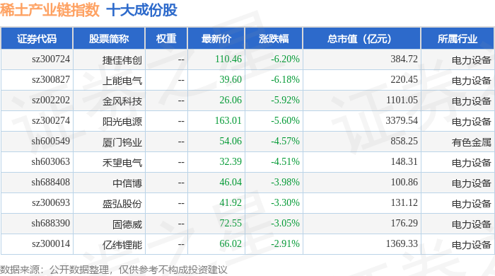 证券之星消息,1月20日,稀土产业链(989013)指数报收于3902.97点,跌1.95%,成交1027.08亿元,换手率3.34%。当日该指数成份股中,上涨的有13家,国电南自以3.05%的涨幅领涨,下跌的有37家,捷佳伟创以6.2%的跌幅领跌。