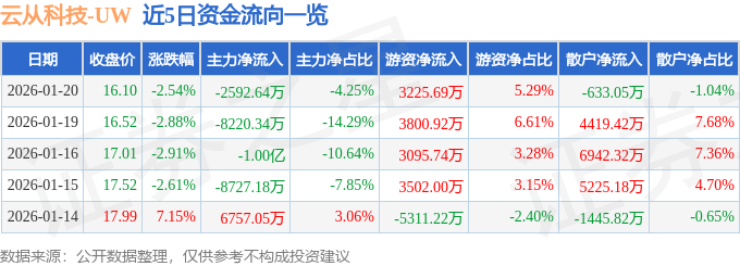 证券之星消息,截至2026年1月20日收盘,云从科技(688327)报收于16.1元,下跌2.54%,换手率4.5%,成交量37.49万手,成交额6.1亿元。
