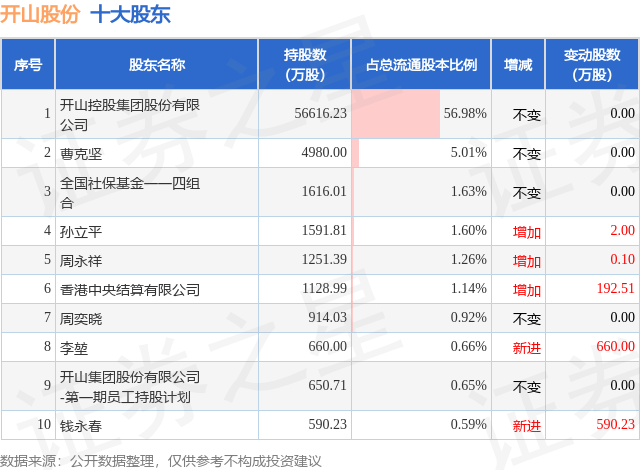 根据开山股份2025年三季报公布的十大股东详情如下: