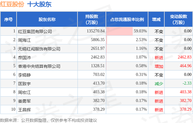 根据红豆股份2025年三季报公布的十大股东详情如下: