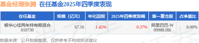 证券之星消息,截止2025年四季度末,基金经理张腾管理的银华心佳两年持有期混合(010730)季度净值涨0.37%。