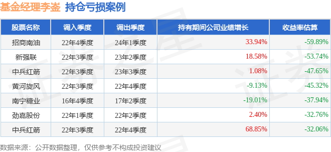 李崟管理的招商稳健平衡混合A基金在22年4季度买入招商南油,在持有1年又1个季度后在24年1季度卖出。持有期间的估算收益率为-59.89%,持有期间招商南油在2022年到2024年的年报归属净利润增幅达33.94%。