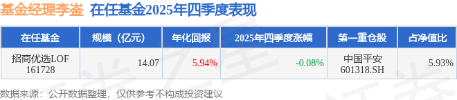 证券之星消息,截止2025年四季度末,基金经理李崟管理的招商优选LOF(161728)季度净值跌0.08%。