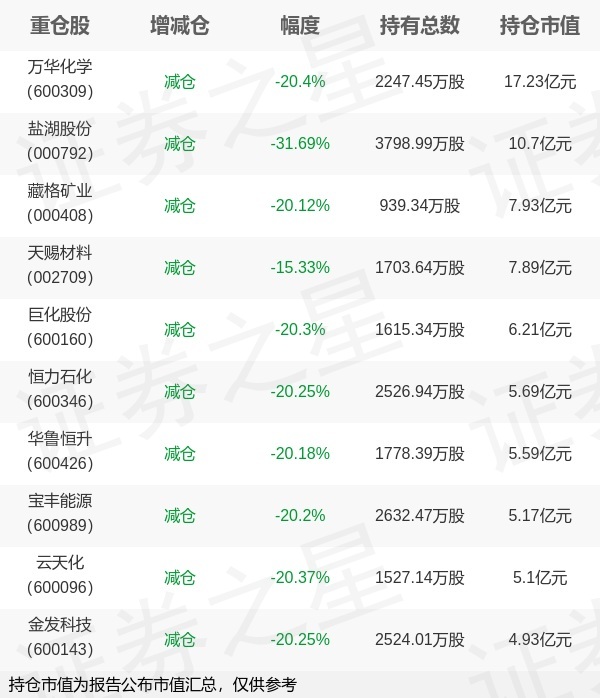 证券之星消息,1月21日鹏华基金旗下闫冬管理的鹏华中证细分化工产业主题交易型开放式指数基金公布年报,近1年净值增长率54.8%。其中万华化学持仓占比10.16%,为该基金第一大重仓股;详细数据如下: