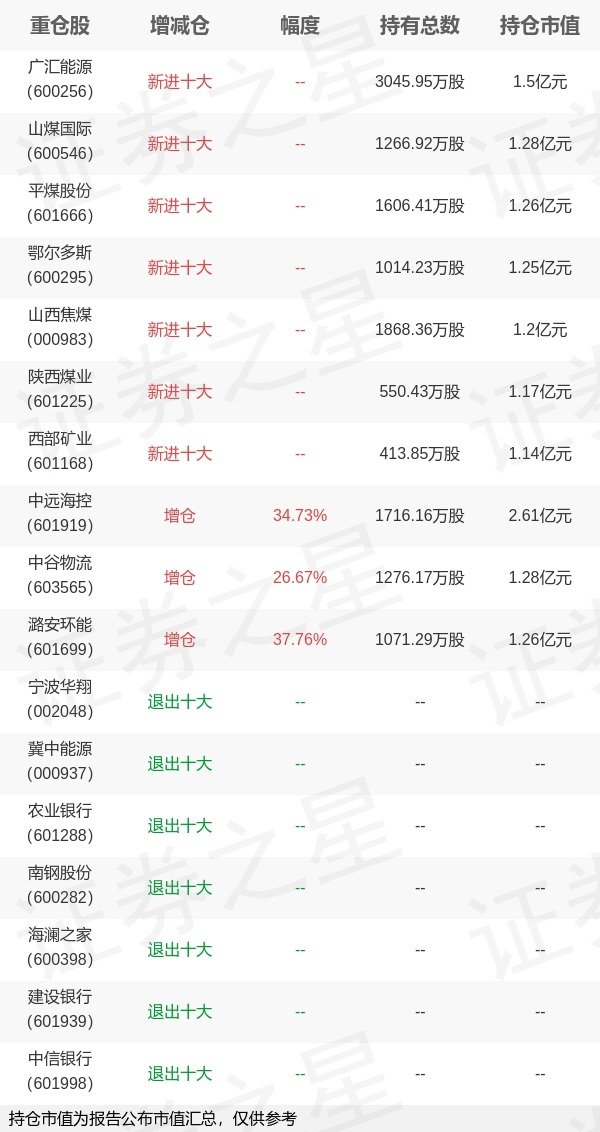证券之星消息,1月21日招商基金旗下王平 刘重杰管理的招商中证红利交易型开放式指数基金公布年报,近1年净值增长率8.74%。与上一季度相比,该基金前十大重仓股新增广汇能源,山煤国际,平煤股份,鄂尔多斯,山西焦煤,陕西煤业,西部矿业;并对中远海控增仓442.38万股,为该基金第一大重仓股;宁波华翔,冀中能源,农业银行,南钢股份,海澜之家,建设银行,中信银行等退出前十大重仓股;详细数据如下: