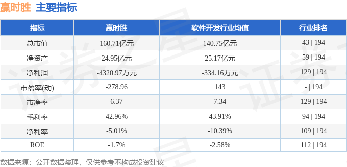 该股主要指标及行业内排名如下: