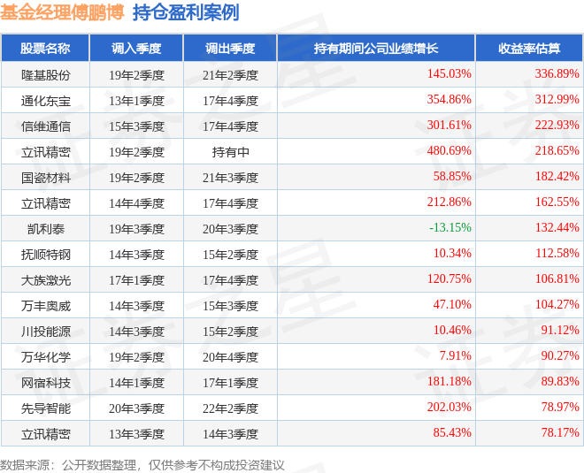 傅鹏博管理的兴全社会责任混合基金在14年3季度买入川投能源,在持有3个季度后在15年2季度卖出。持有期间的估算收益率为91.12%,持有期间川投能源在2014年到2015年的年报归属净利润增幅达10.46%。