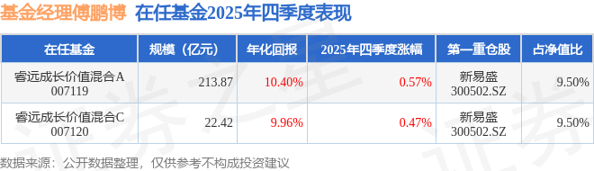 证券之星消息,截止2025年四季度末,基金经理傅鹏博旗下共管理2只基金,本季度表现最佳的为睿远成长价值混合A(007119),季度净值涨0.57%。