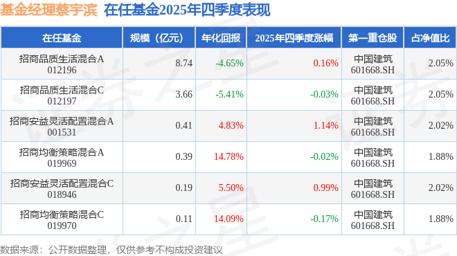 证券之星消息,截止2025年四季度末,基金经理蔡宇滨旗下共管理6只基金,本季度表现最佳的为招商安益灵活配置混合A(001531),季度净值涨1.14%。