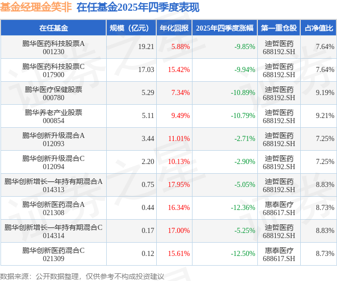 金笑非管理的鹏华创新升级混合A基金在22年4季度买入迪哲医药,已连续持有3年又0个季度。持有期间的估算收益率为98%,持有期间迪哲医药在2022年到2025年的中报归属净利润降幅为9.41%。