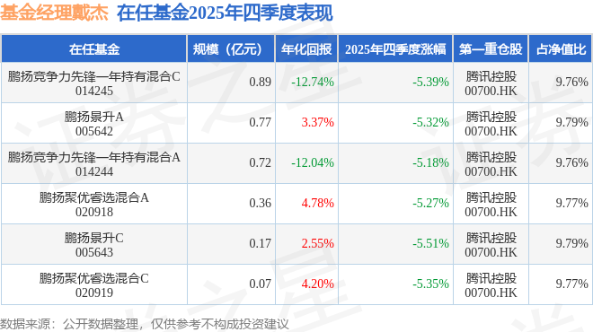 证券之星消息,截止2025年四季度末,基金经理戴杰旗下共管理6只基金,本季度表现最佳的为鹏扬竞争力先锋一年持有混合A(014244),季度净值跌5.18%。