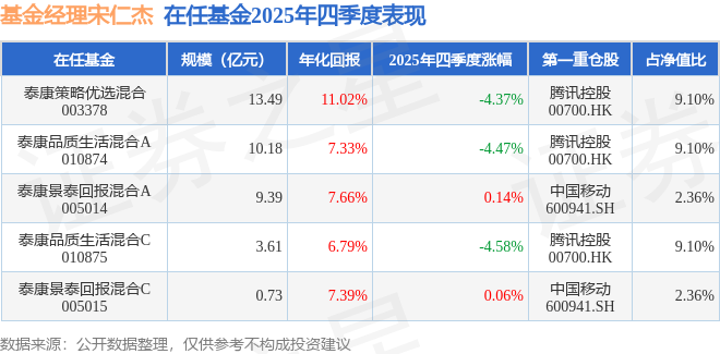 证券之星消息,截止2025年四季度末,基金经理宋仁杰旗下共管理5只基金,本季度表现最佳的为泰康景泰回报混合A(005014),季度净值涨0.14%。