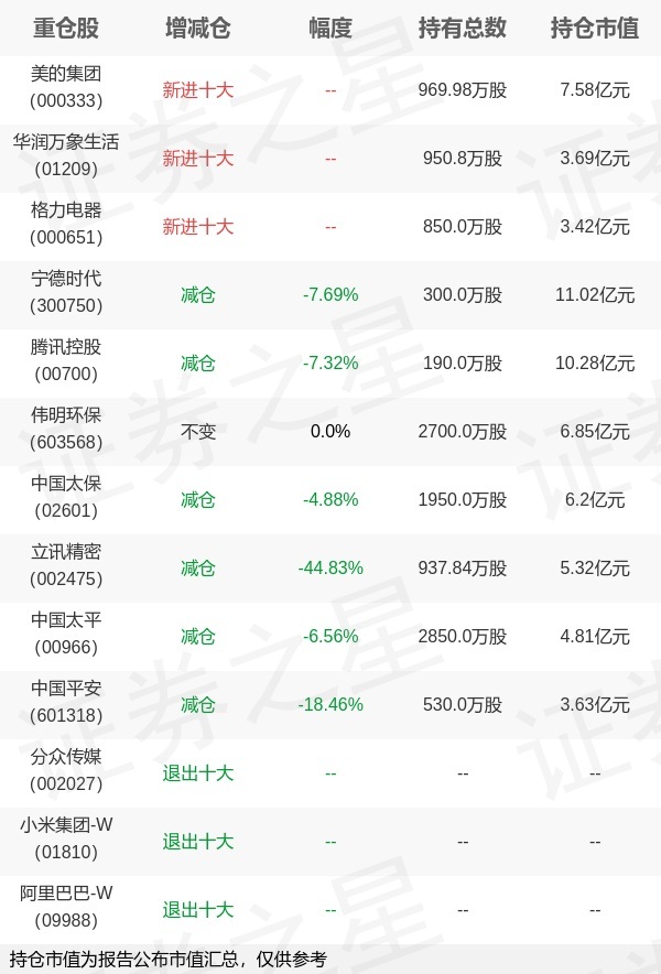 证券之星消息,1月21日睿远基金旗下赵枫管理的睿远均衡价值三年持有期混合型基金公布年报,近1年净值增长率37.39%。与上一季度相比,该基金前十大重仓股新增美的集团,华润万象生活,格力电器;其中宁德时代持仓占比9.45%,为该基金第一大重仓股;分众传媒,小米集团-W,阿里巴巴-W等退出前十大重仓股;详细数据如下: