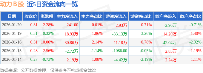 1月20日的资金流向数据方面,主力资金净流入0.02万元,占总成交额0.01%,游资资金净流入2.93万元,占总成交额0.71%,散户资金净流出2.96万元,占总成交额0.71%。