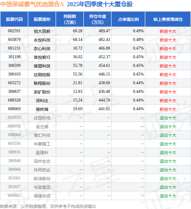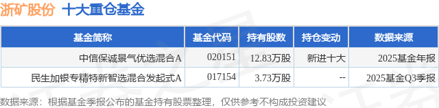 根据2025基金年报公募基金重仓股数据,重仓该股的公募基金共1家,其中持有数量最多的公募基金为中信保诚基金的中信保诚景气优选混合A。中信保诚景气优选混合A目前规模为1.88亿元,最新净值2.0308(1月20日),较上一交易日上涨0.1%,近一年上涨57.6%。该公募基金现任基金经理为王颖。王颖在任的基金产品包括:中信保诚新锐混合A,管理时间为2020年1月8日至今,期间收益率为45.12%;中信保诚中证500指数增强A,管理时间为2024年6月21日至今,期间收益率为75.09%;中信保诚瑞丰6个月混合A,管理时间为2025年2月25日至今,期间收益率为2.53%;中信保诚多策略混合(LOF)A,管理时间为2025年8月20日至今,期间收益率为10.82%。
