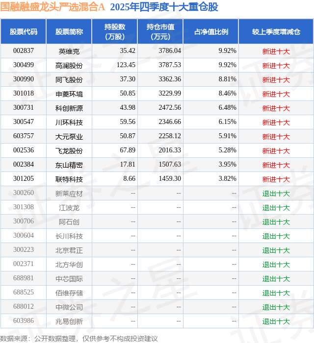 国融融盛龙头严选混合A的前十大重仓股如下: