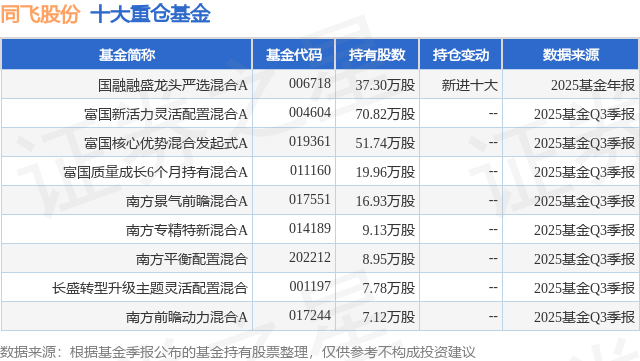 重仓同飞股份的公募基金请见下表: