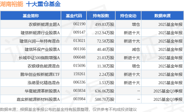 重仓湖南裕能的前十大公募基金请见下表: